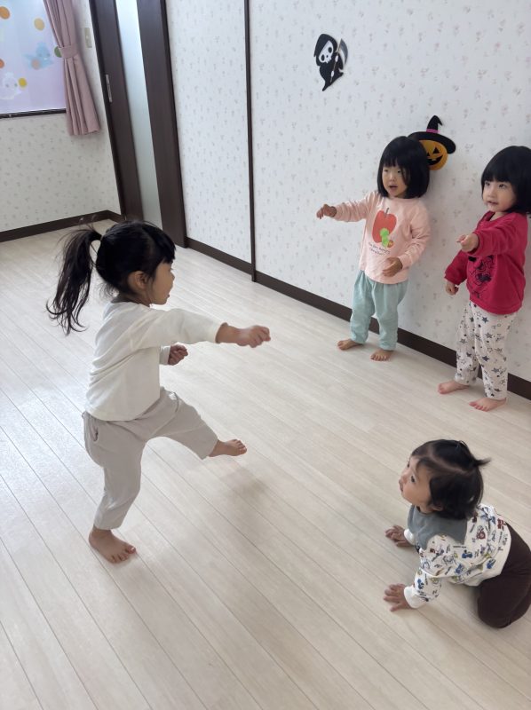 お馴染みのアンパンマンやラーメン体操、忍者の曲に合わせて、思いっきり体を動かしましたっ🎶