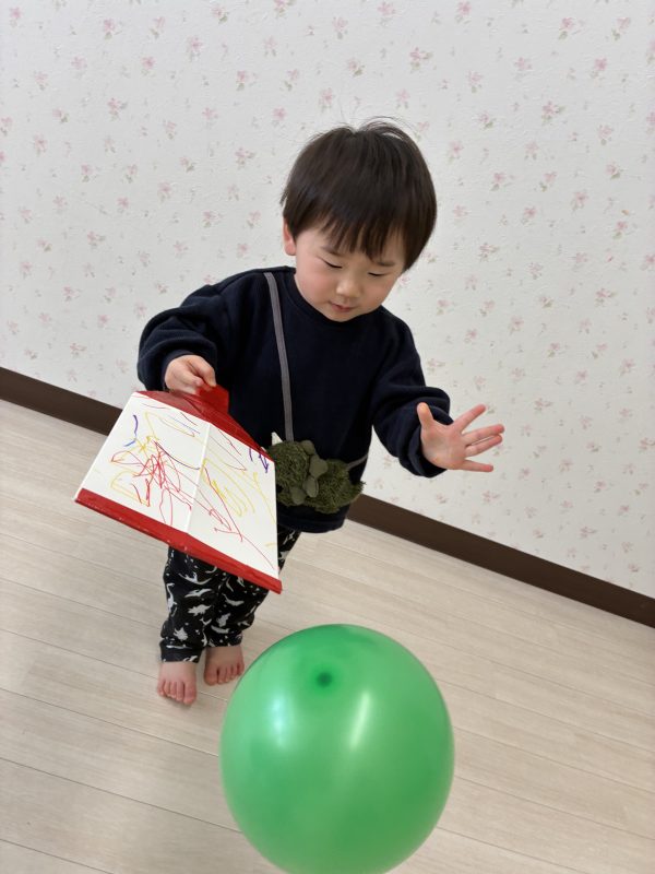 作った羽子板で風船を羽の代わりにして遊びました🎈