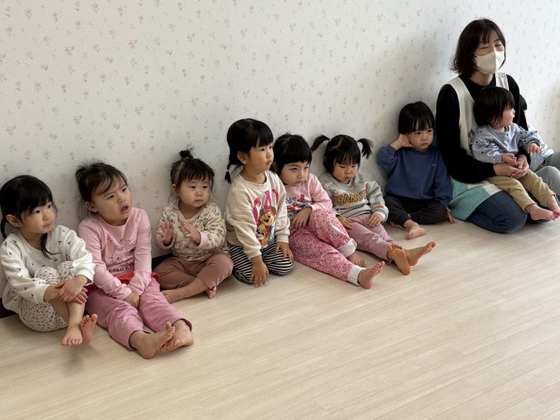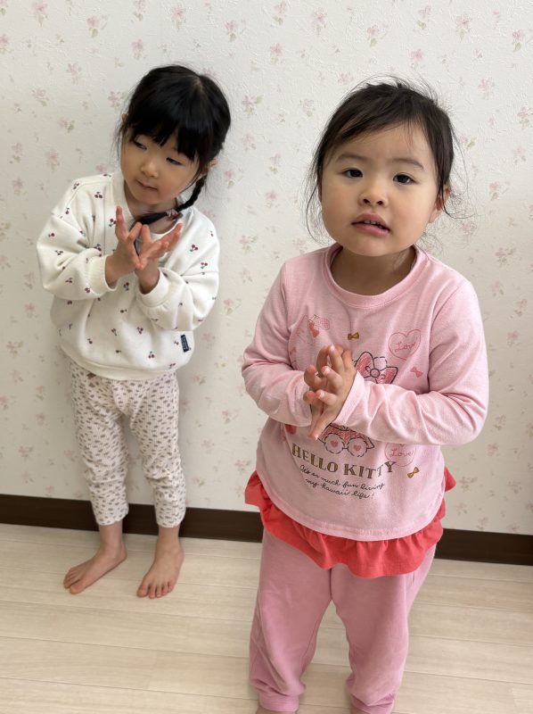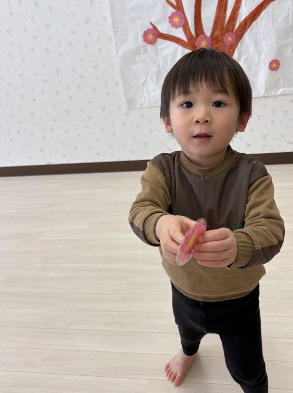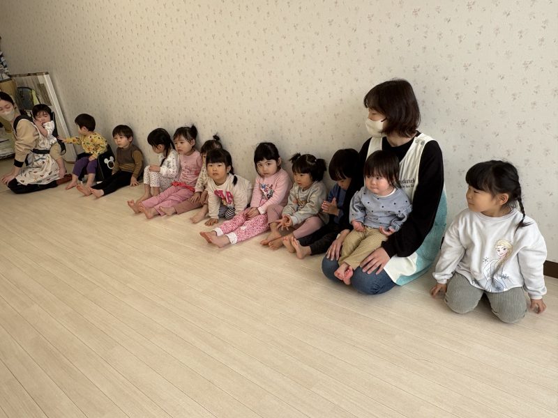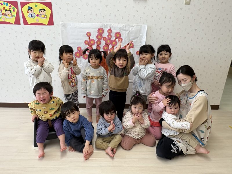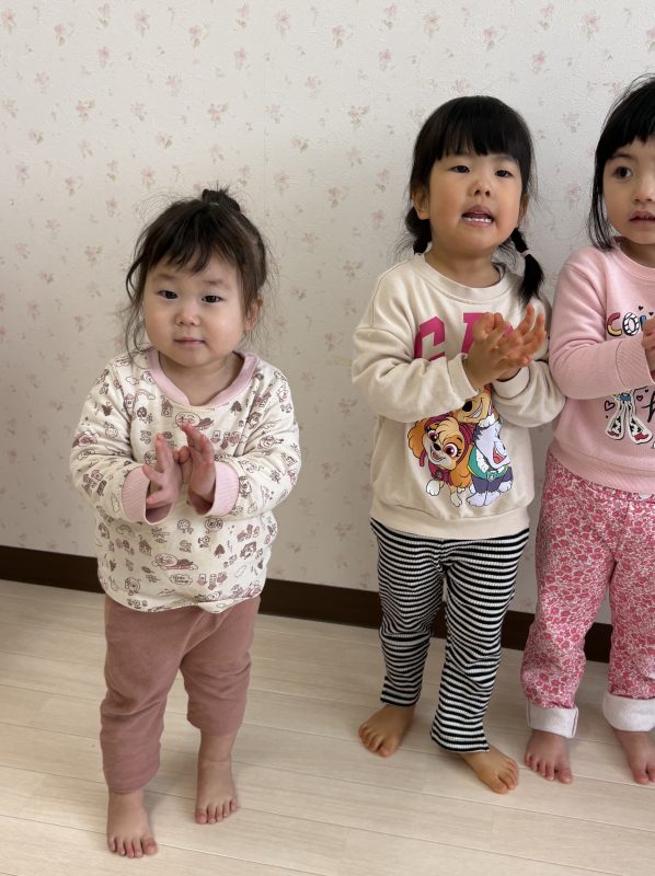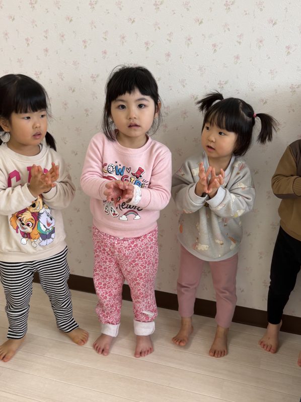 まずはみんなで「うれしいひなまつり」を歌います 🎵お手々をお花にするのがポイントだよ🤗❤