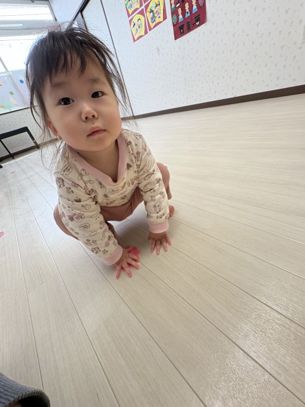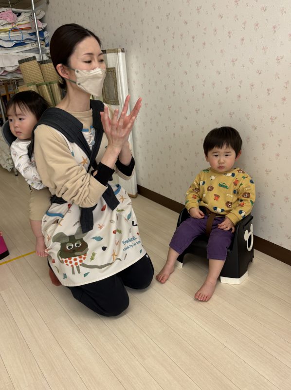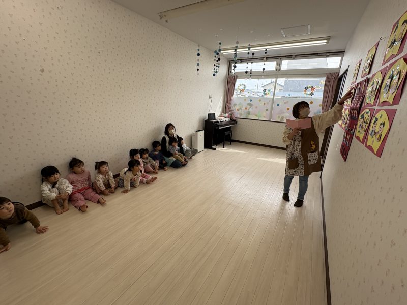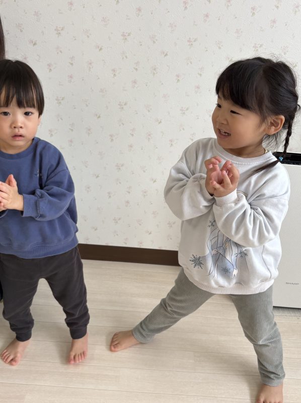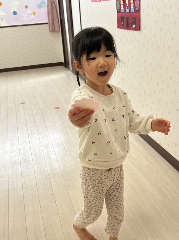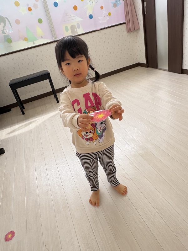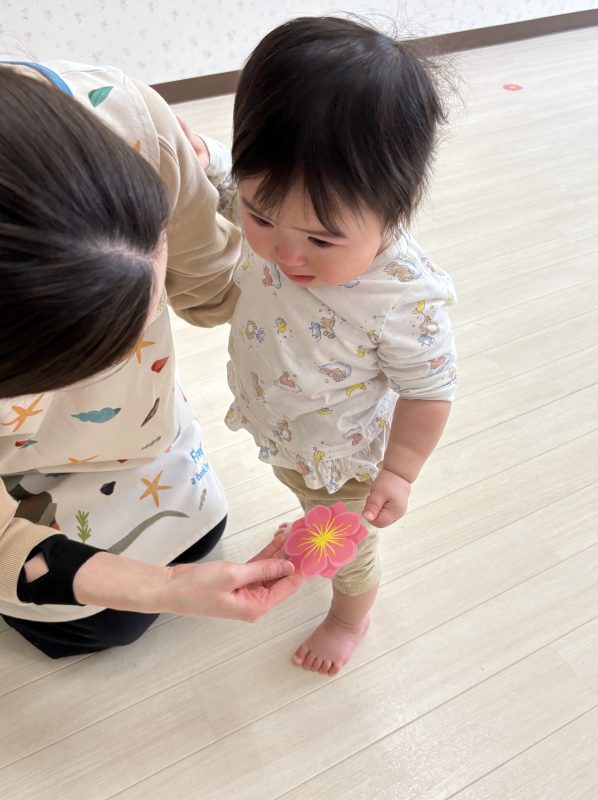 まずはみんなで「うれしいひなまつり」を歌います 🎵お手々をお花にするのがポイントだよ🤗❤