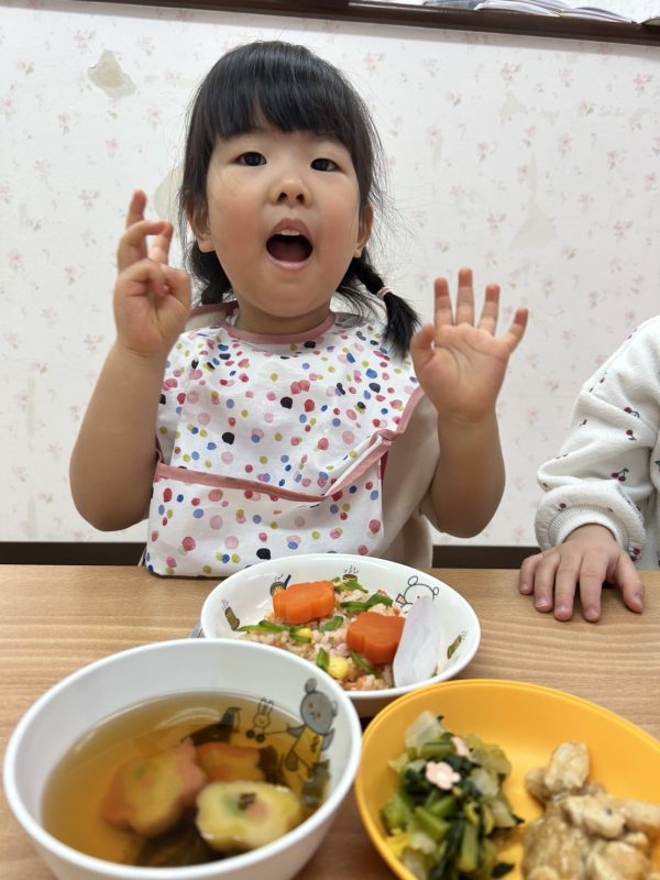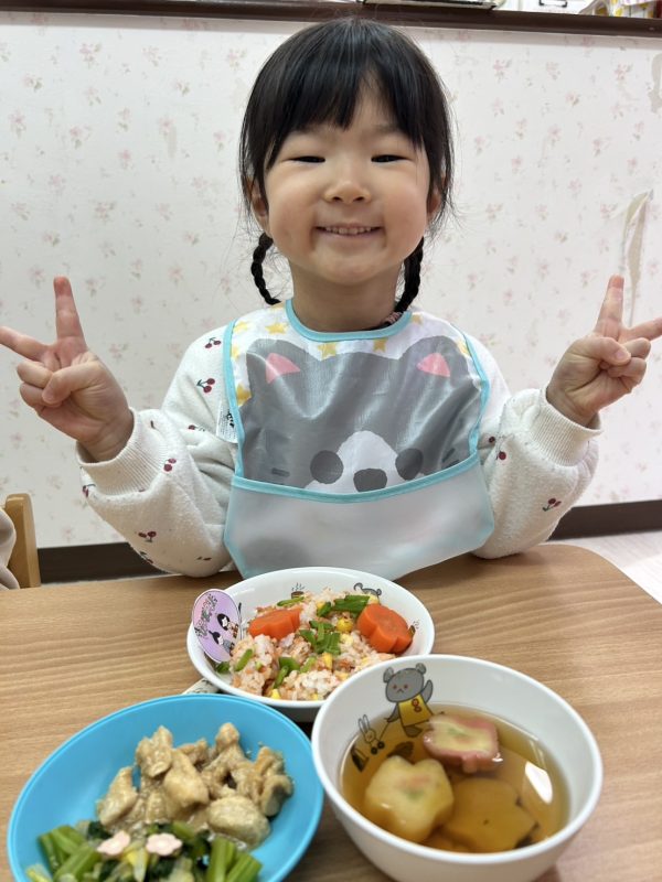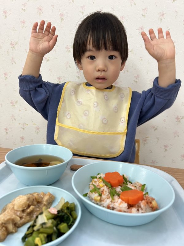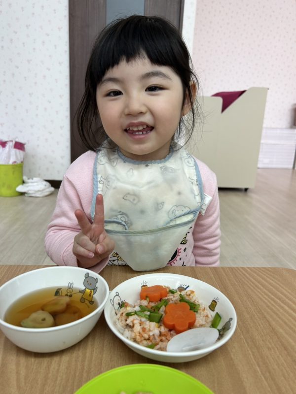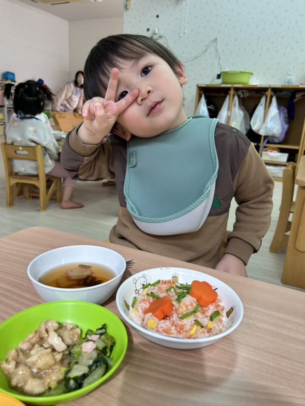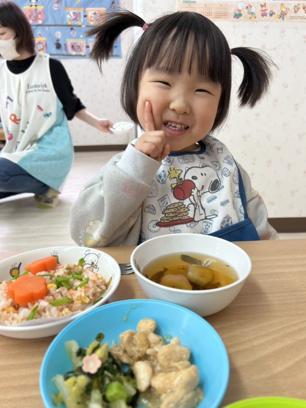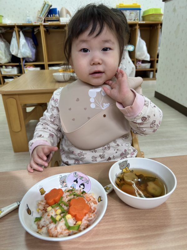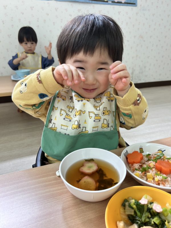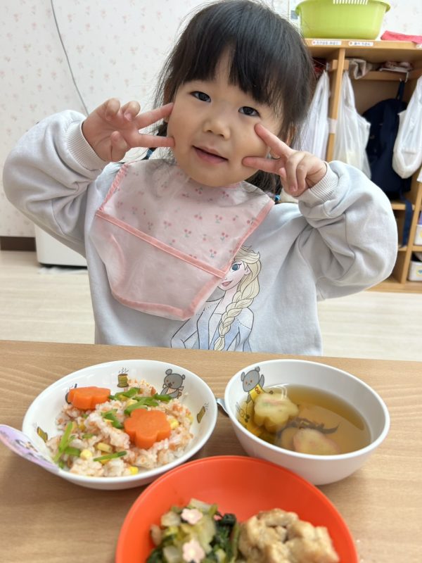 最後に、お給食の様子も😋今日も、とってもかわいいおひな様メニューをつくってくれました🎎お給食さん、いつもありがとう🤗❤